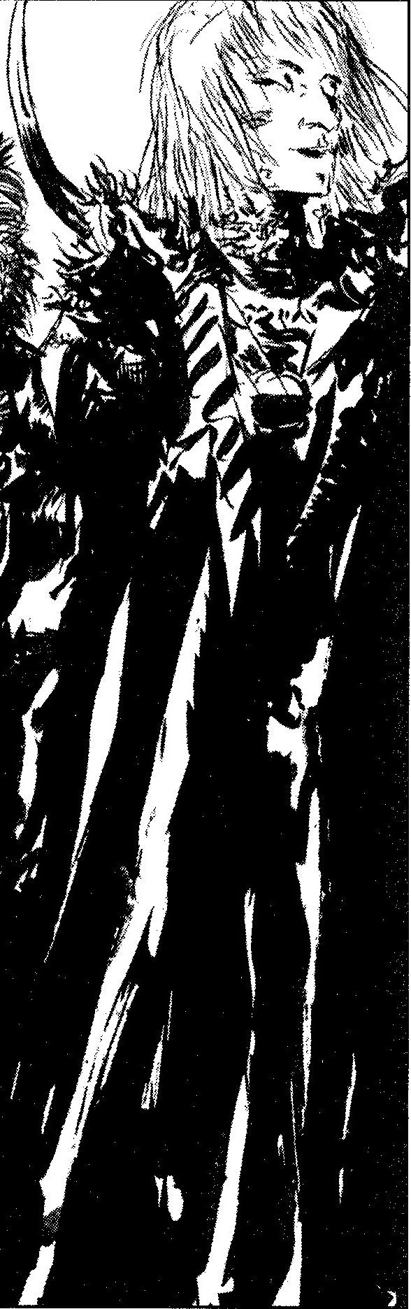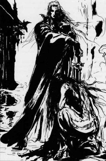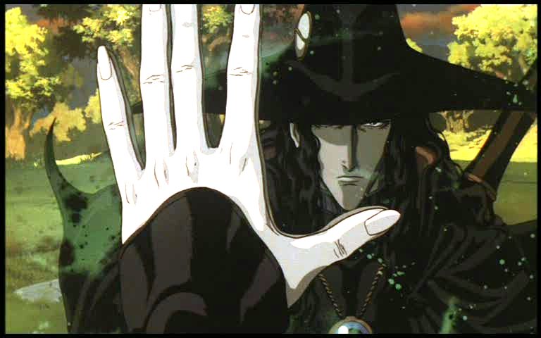 Though many become Vampire Hunters, some succumb to their vampire urges and attack the very people who hired them. Human beings detest them, and dhampirs often hate their own kind, as well. While it varies from individual to individual, they usually inherit half of the abilities of their vampire parent – half their strength, speed, sight, hearing, and so on. Some of the faster-healing dharmpirs can break every bone in their body and rupture some internal organs, yet heal completely in about 72 hours. They can see in the dark. Some Dhampirs age like humans, judging from Granny Viper's appearance. Those lacking sufficient willpower drink human blood. However, in most cases their victims don't become puppets like those of vampires do. Caroline's ability to enslave plants and inanimate objects may reflect her Barbarois background as much as her vampire parentage. In general, their vampire biology dominates. Their biorhythms peak at midnight and bottom out at noon. Less than one Dhampir in ten can with stand an attack during the day. Rain or shine, their bodies crave rest during the daylight hours. Even in a shady place, they can't remain conscious more than eight hours during the day. Four hours of walking around in the sunlight can put them into a coma. A super-grade-A Vampire Hunter can barely manage five to six hours of activity during the day. And, in case you didn't notice, absolutely none of that seems to have any bearing on D. He is, however vulnerable to one dhampir weakness: sunlight syndrome. In most dhampirs this manifests itself every six months as a sudden feeling of exhaustion, which forces the sufferer to retire from action for several days. D apparently can go five years between such attacks, but he must recover by resting buried under soil. Like Nobles however, this affliction will only affect him while he is on planet Earth – he isn't effected by sunlight while on other planets or inside other dimensions.